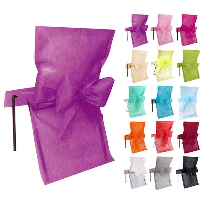 Les housses de chaise sont en tissu non tissé et sont livrées par lot de 10. Vous disposez de différents coloris au choix : rose vif, lilas, bordeaux, ivoire, vert, noir, orange, vert menthe, blanc, gris, rose et turquoise.
