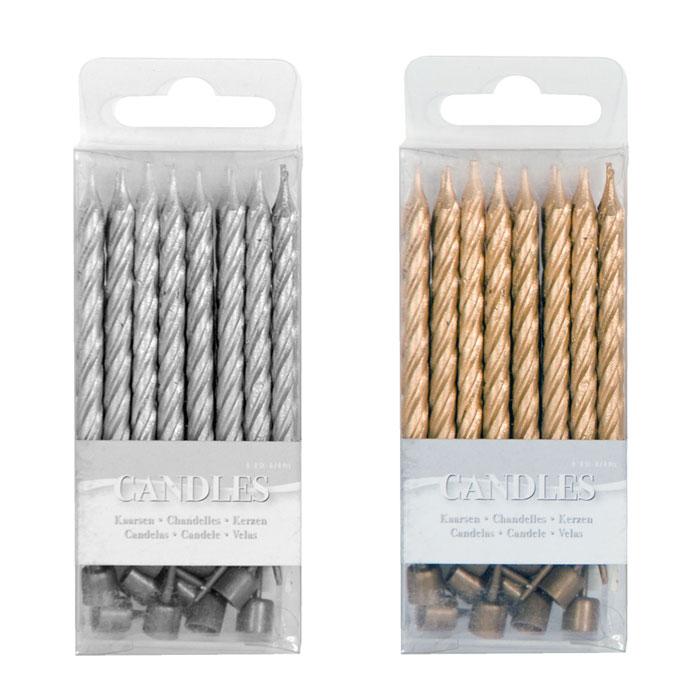 Les bougies sont en cire et de couleur métallique. À vous de choisir entre la couleur dorée et la couleur argentée. Elles sont livrées par lot de 16, accompagnées d'embouts en plastique.