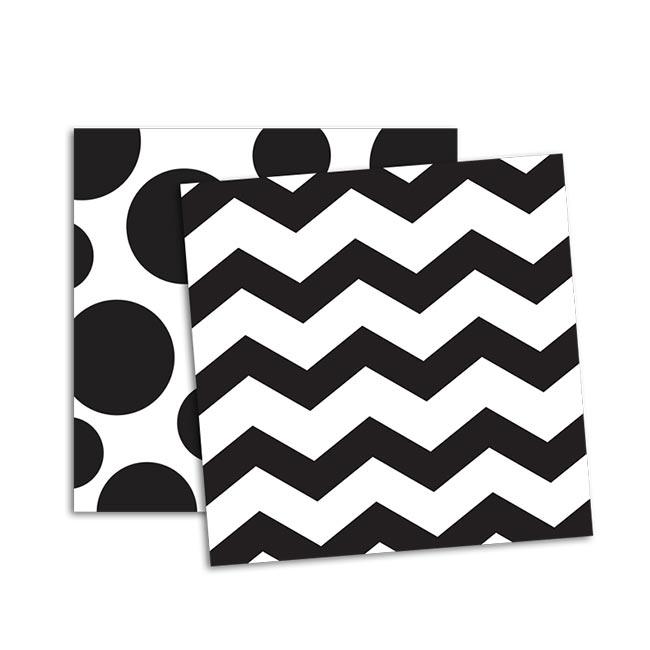 Les serviettes sont livrées par lot de 16. Elles sont d'un côté à pois et de l'autre à rayures. Les serviettes mesurent une fois dépliées env. 33 x 33 cm et disponibles dans différentes couleurs au choix : vert, bleu, bleu clair, jaune, orange, rouge, rose, rose vif ou noir.