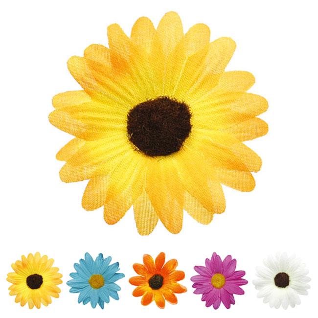 Les fleurs sont en tissu et mesurent chacune env. 5,5 cm. Elles sont livrées par lot de 24 et sont disponibles dans différentes couleurs au choix : blanc, jaune, bleu, orange ou lilas.