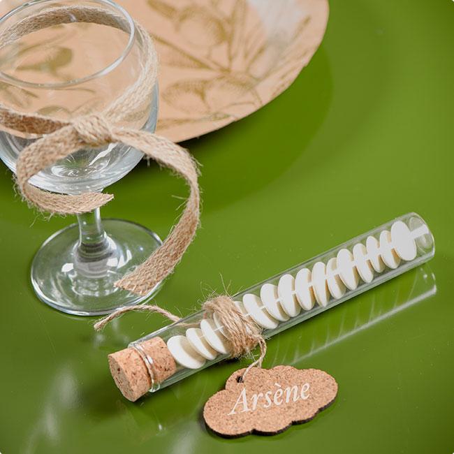 Plus d'infos : Une idée de déco de table très originale et élégante ! À vous de remplir chaque éprouvette à l'aide de dragées par exemple.