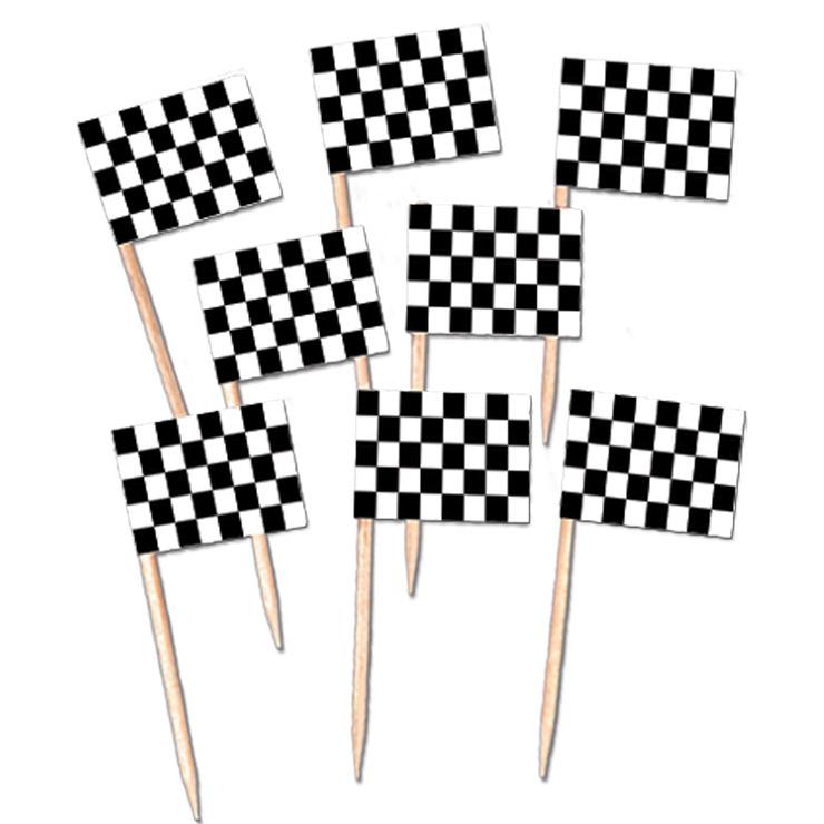 Plus d'infos : Les pics drapeaux à damiers mesurent environ 6,6 cm de haut. Le pic est en bois et le petit drapeau en papier.