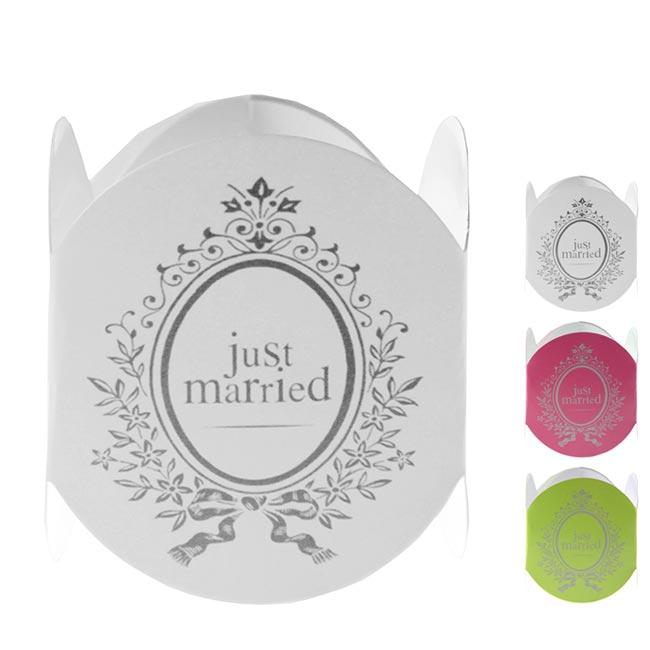 Les ronds de serviette "Just Married" sauront se faire remarquer sur votre table ! Ils sont en carton fin et livrés par lot de 6.