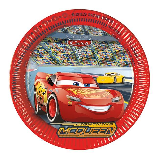 Les assiettes en carton "Cars - Evolution" ont un diamètre d´env. 22,5 cm. Elles sont livrées par lot de 8 et sont imprimées sur une face. Le motif multicolore représente Lightning McQueen et Cruz Ramirez. Où? Sur un circuit de course bien sûr !