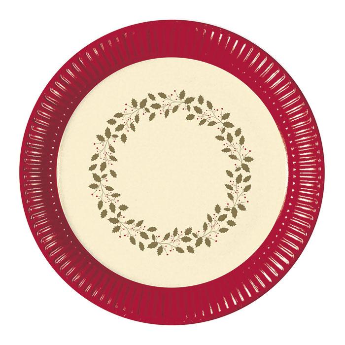 Les assiettes en carton "Fêtes de Noël dorées" sont livrées par lot de huit et mesurent chacune env. 23 cm de diamètre. Idéales pour le réveillon de Noël ainsi que les fêtes de fin d'année, elles disposent d'un bord rouge, ainsi que de motifs représentant des branches de houx dorées, que vous retrouverez au centre de chaque assiette.