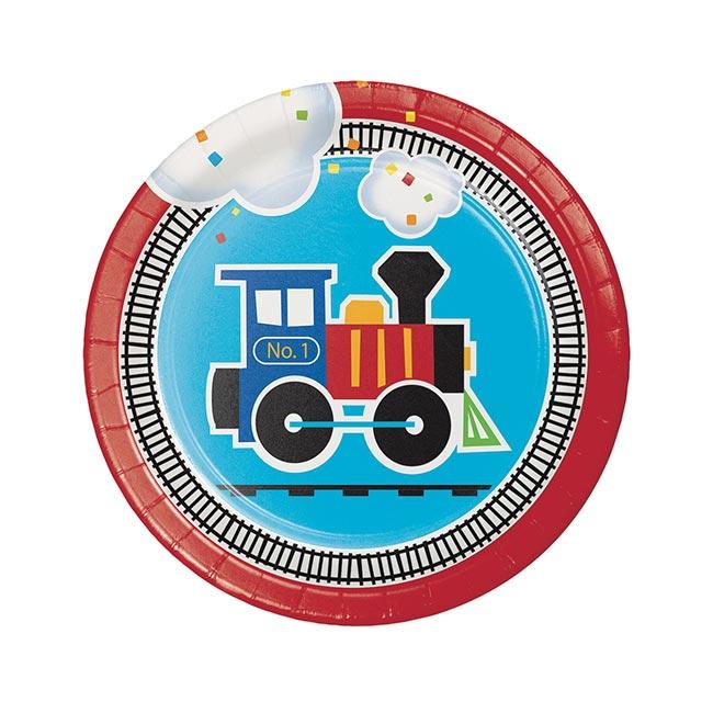 8 Petites assiettes en carton "Petit train coloré"