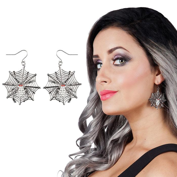 Les boucles d'oreille "Araignée" sont en plastique. Pour les porter, il faut vous avoir les oreilles percées. Les boucles d'oreilles sont livrées par paire, avec des fermetures en plastique transparent. Les toiles d'araignées mesurent env. 4 cm de diamètre et sur chaque toile se trouve une araignée argentée à strass.