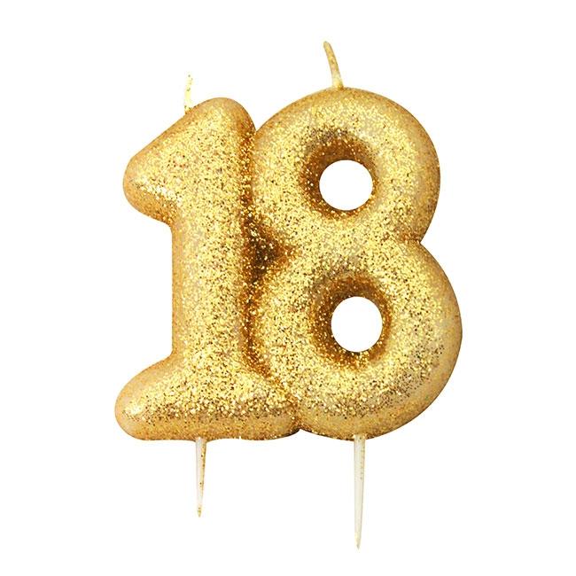 Article: Bougie chiffre paillettée "18 or " 9 cm