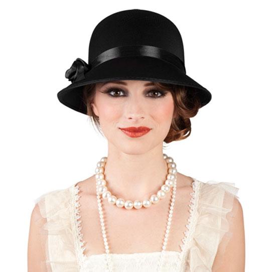 Les années 20, les Années Folles ! Une petite soirée Charleston en vue ? Ce chapeau est un excellent choix. Vous ressemblerez à une demoiselle des années 20. Le chapeau est orné d'un petit ruban noir qui forme une rose sur le côté. Il ne vous manque plus que la petite robe et le collier de perles !