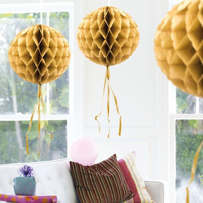 • Déco de plafond "Balle en papier crépon" 30 cm - or