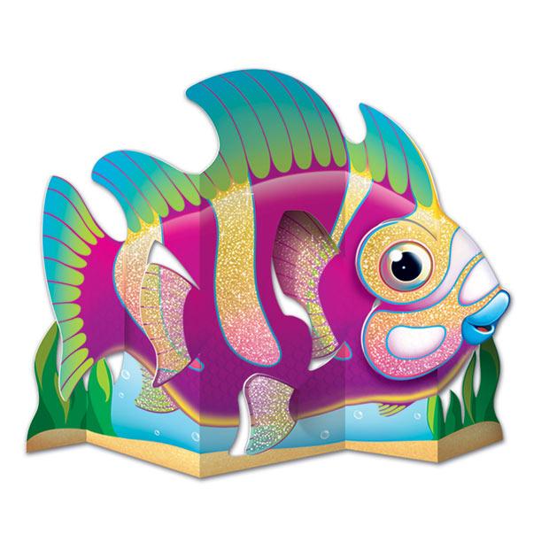 Transformez votre salle des fêtes en paradis exotique, car avec ce poisson haut en couleur, vous pourrez décorer vos murs, vos sols ou vos meubles. Cette déco de table dans les tons fuchsia, lilas, verts, jaunes et bleus est ornée par endroit de paillettes argentées. Pliez les nageoires sur le côté et votre poisson tiendra debout tout seul, pour le plus grand plaisir des petits et des grands invités.