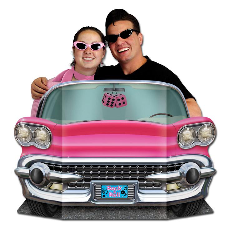 Ce superbe article mesure 94 x 64 cm et représente une Cadillac rose. Mettez ce décor pour photo sur une table et demandez à vos invités de se placer juste derrière. On aura l'impression qu'ils sont assis dans la voiture. Et si vos invités se déguisent en John Travolta et en Olivia Newton-John, alors le spectacle sera grandiose !
