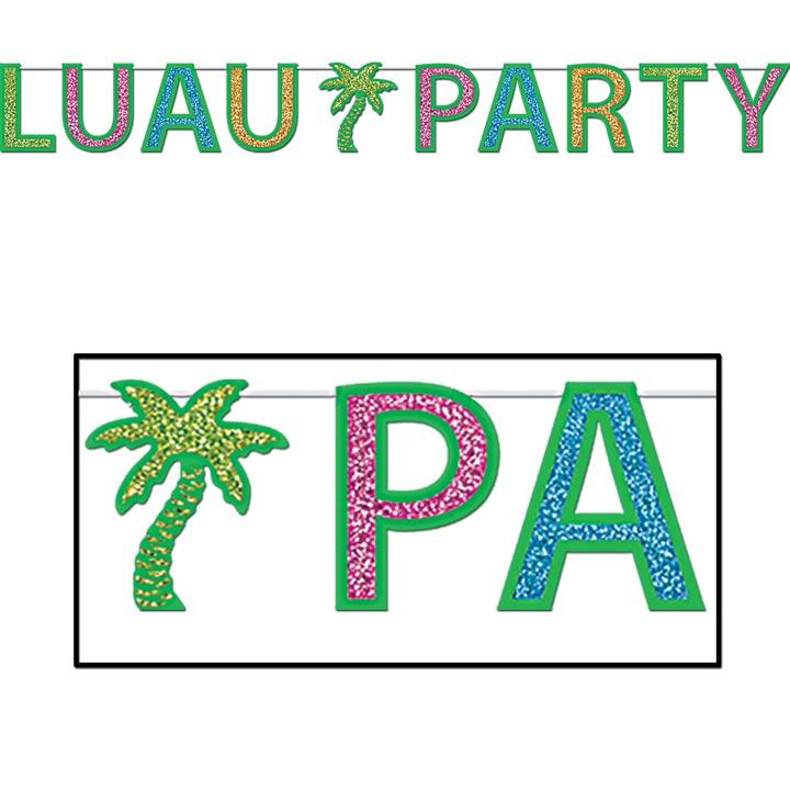 Plus d'infos : Cette guirlande est composée de jolies lettres étincelantes qui forment les mots "Luau Party". Elle mesure env. 2,4 mètres de long et chaque lettre a une largeur d'environ 22 cm. Vous pourrez fixer la guirlande avec du scotch ou des punaises.