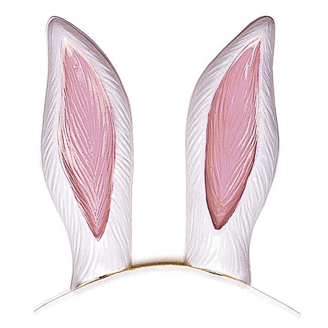 Les oreilles de lapin sont en plastique et de couleur blanche avec intérieur rose. Elles mesurent env. 16 cm de haut. Les oreilles se portent à l'aide d'un élastique. Elles sont fixées sur une bande en plastique.
