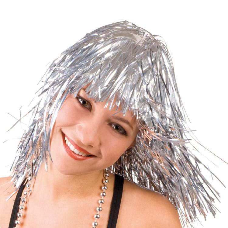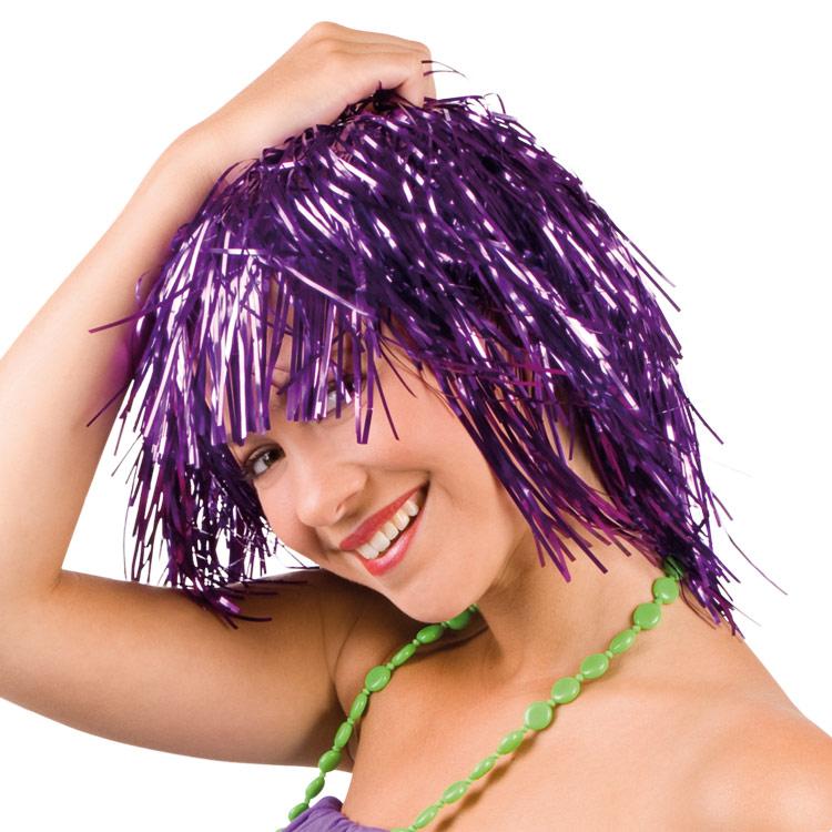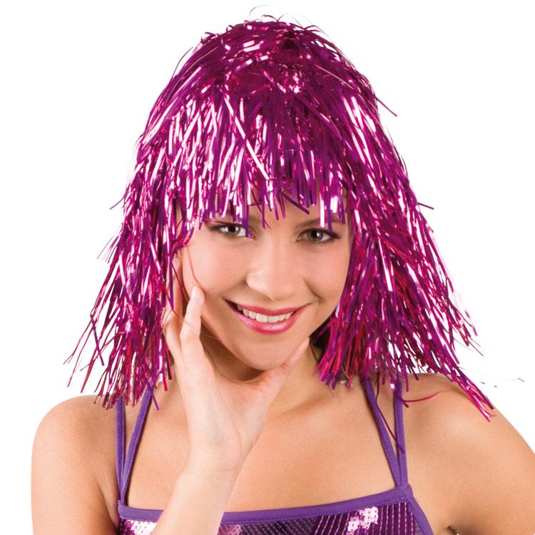 Cette perruque de cheveux d'ange existe dans les coloris suivants : or, argent, vert, bleu, lilas, rose vif ou multicolore. La perruque est composée d'une multitude de cheveux d'ange colorés qui forment une coiffure descendant au niveau des épaules. L'aspect général est brillant et métallisé.